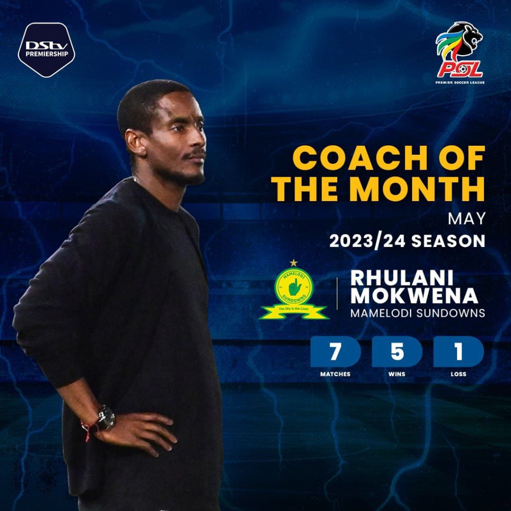During the last month of league football this May, Mokwena oversaw four wins, two draws and a defeat from their seven matches, a period in which Sundowns were unstoppable until the slip up to suffer their first defeat of the season to Cape Town City on the last day of the season. During this period, Sundowns scored 10 goals, and only conceded three. With his May success, Mokwena has won the award for the third time this season, having previously won it in August and April.